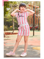 Girls Casual Stripes Half Sleeves Short Set - Pink
