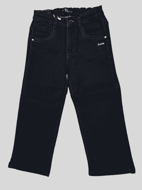 Girls Casual Plain Jeans Pant Half Elastic - Navy Blue