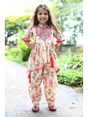 Girls Traditional 3/4th Sleeves Patiala Set - Cream & Pink