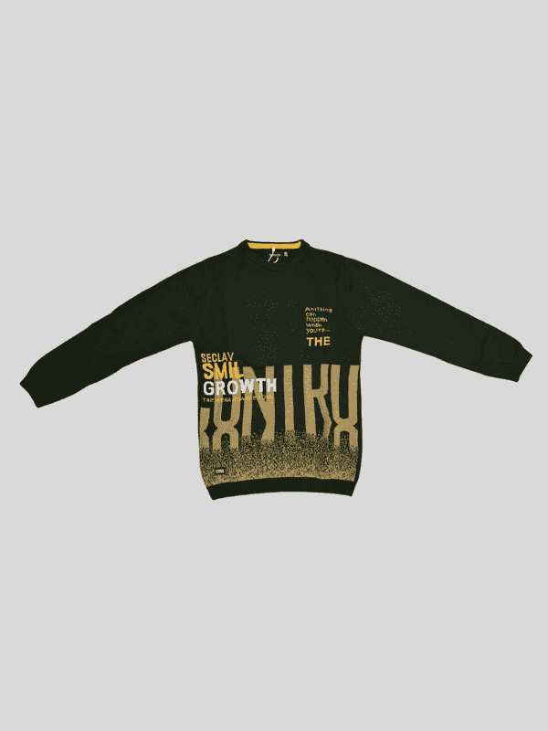 Boys Casual Full Sleeves Printed Round Neck T-Shirt - Green