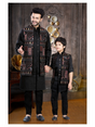 Boys Traditional Printed Chuddidar Kurta with Koti - Black