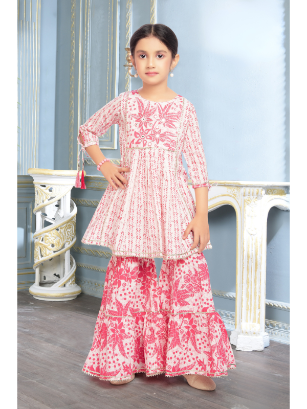 Girls Traditional 3/4th Sleeves Sharara Set - Pink