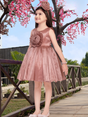 Girls Party Heavy Party Frock with work - Peach - 02-03 YEARS is backordered and will ship as soon as it is back in stock.