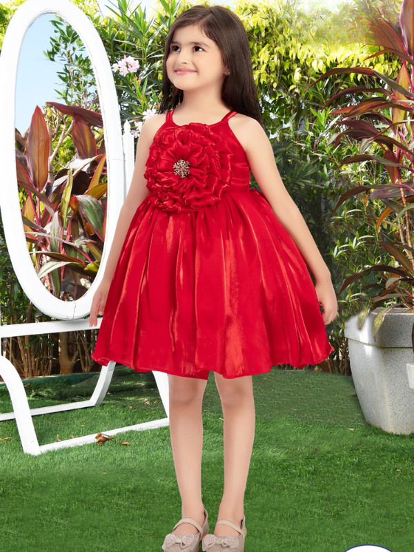 Girls Party Plain Satin Party Frock - Red - 01-02 YEARS is backordered and will ship as soon as it is back in stock.