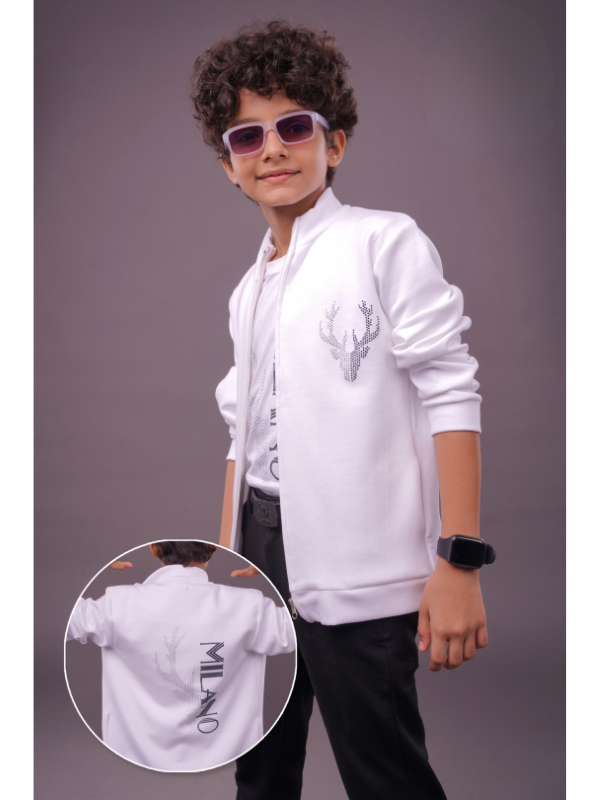 Boys Casual Full Sleeves Plain Shirt With Zipper - White