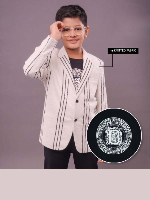 Dress your boy in the Boys Party Blazer With T-Shirt for a stylish, comfortable, and trendy look, ensuring he’s always dressed appropriately and feeling confident at any celebration or party!