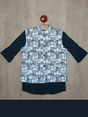 Boys Party Waist Coat with Shirt High Neck-Navy Blue