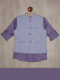 Boys Party Waist Coat with Shirt V Neck-Purple