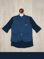 Boys Party Waist Coat with Shirt V Neck-Navy Blue