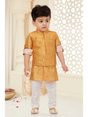 Boys Traditional With Work Chudidar Kurta with Koti - Yellow