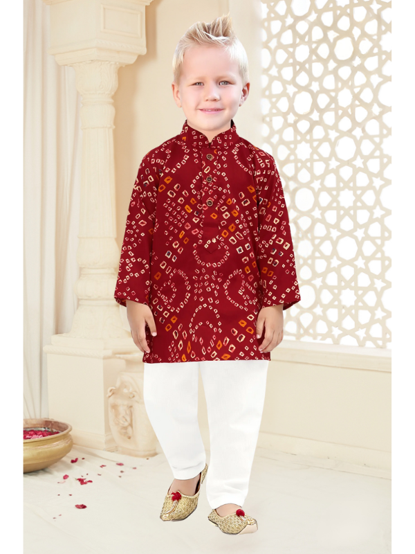Boys Traditional Printed Chudidar Kurta Set - Maroon.