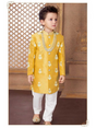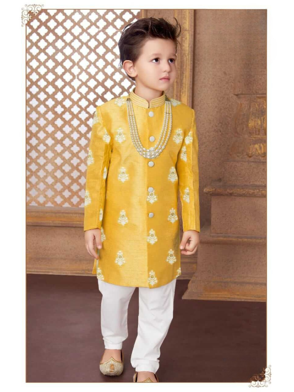 Boys Traditional Printed Regular Sherwani - Yellow