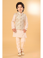 Boys Traditional Self Design Chudidar Kurta with Koti - Cream