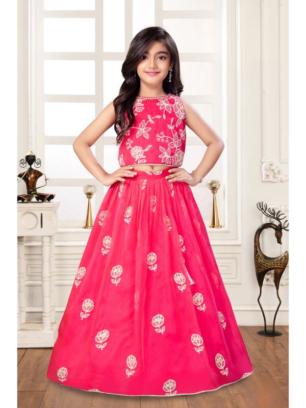 Girls Traditional Sleeves Less Long Choli - Pink.