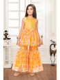 Girls Traditional Sleeves Less Sharara Set - Yellow