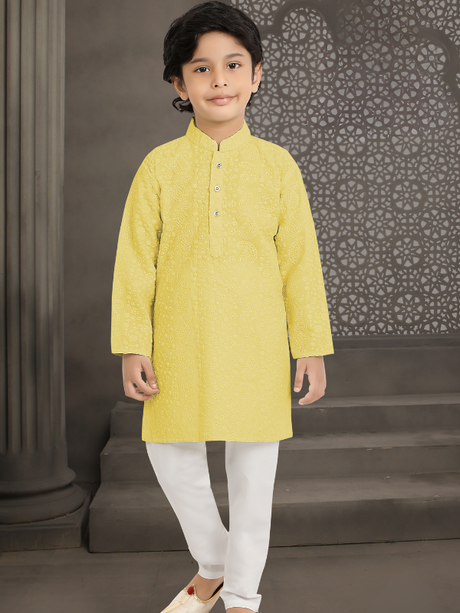 Boys Traditional Self Design Chudidar Kurta Set...