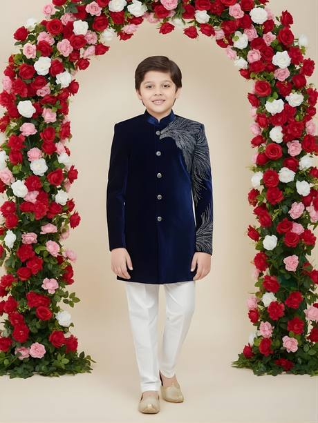 Regular price From Rs. 1,300.00Unit price /UnavailableBoys' Navy Blue Velvet Jodhpuri Suit with Silve...