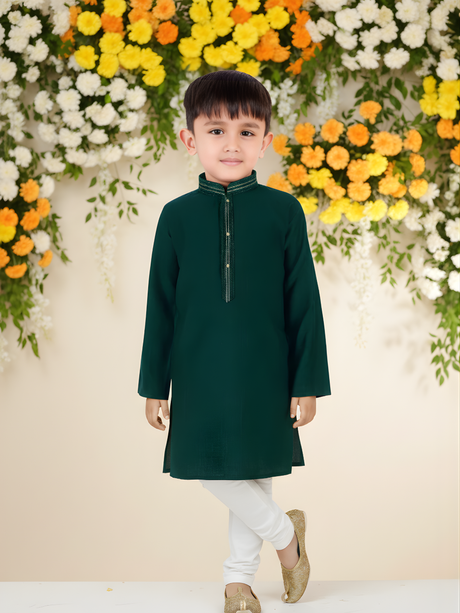 Regular price From Rs. 3,775.00Unit price /UnavailableBoys' Bottle Green Kurta Pajama Set with Gold N...
