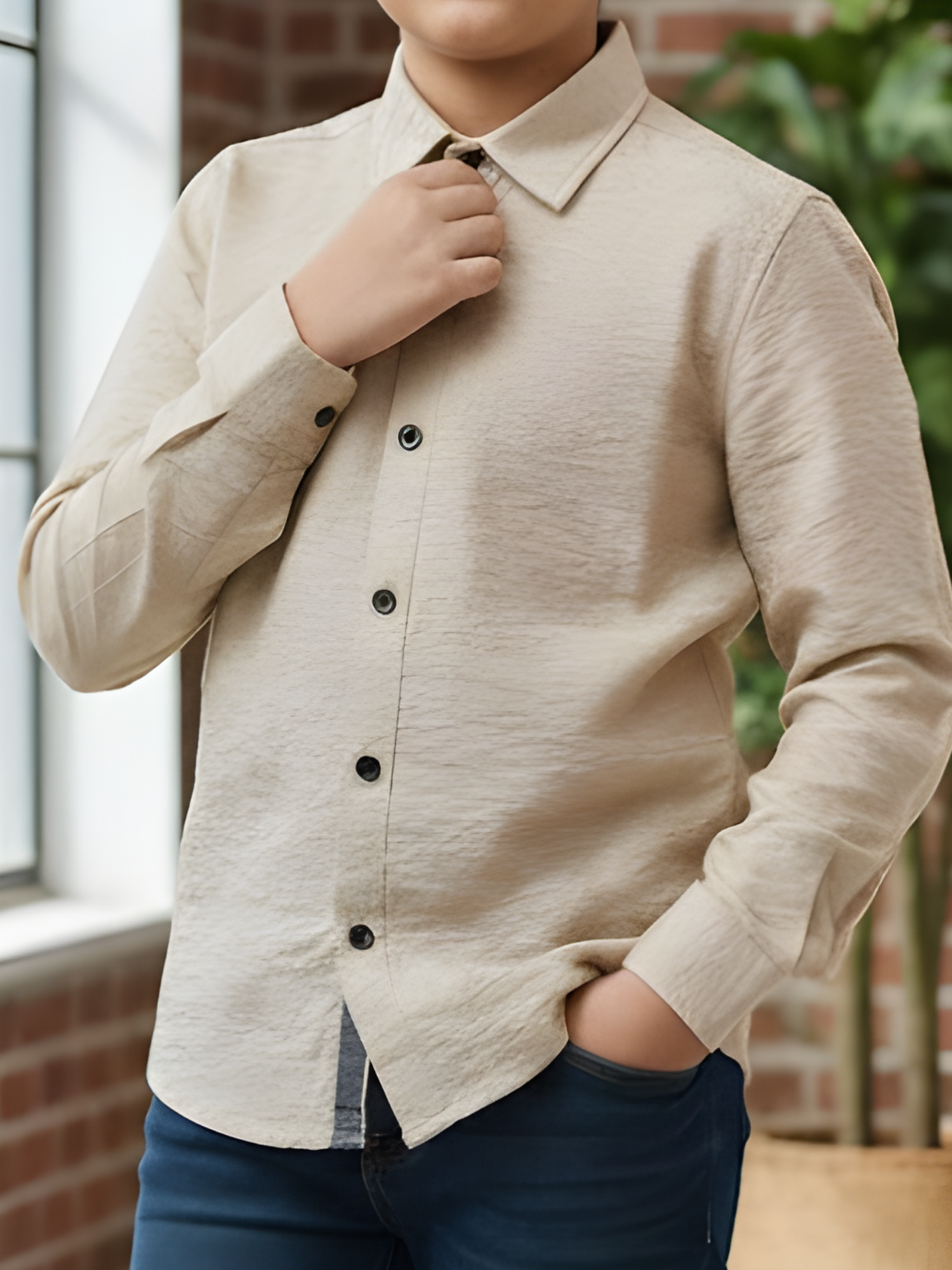 This stylish boys' casual shirt features a sophisticated cream hue and a subtle textured finish, making it a versatile staple for any young gentleman's wardrobe. Designed for both comfort and style, it pairs effortlessly with denim or chinos for a polished yet relaxed look.