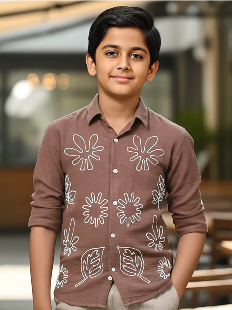 Regular price From Rs. 1,575.00Unit price /UnavailableBoys' Brown/Peach Casual Shirt with White Flora...