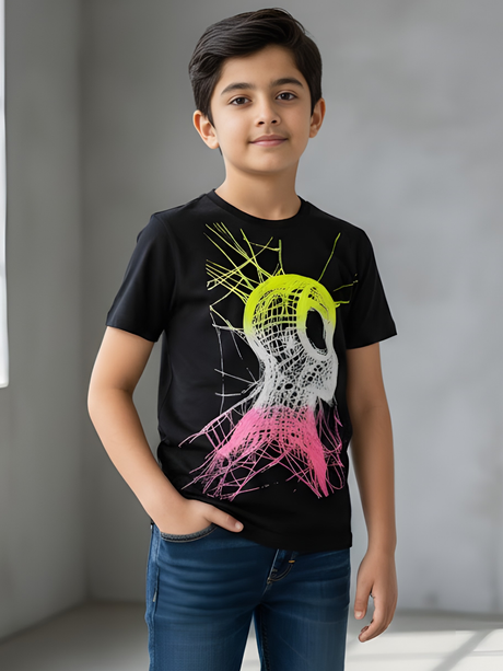 Regular price Rs. 400.00Unit price /UnavailableBoys' Abstract "Neon Pulse" Graphic Tee - Black