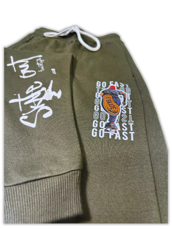 Boys' Olive Green Graphic Joggers | "Skate Out" & "Go Fast" Print Track Pants