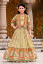 Girls' Elegant Cream & Orange Printed Lehenga Choli with Shrug Jacket