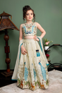 Ivory Cream Kids Lehenga Choli with Peacock & Deer Embroidery