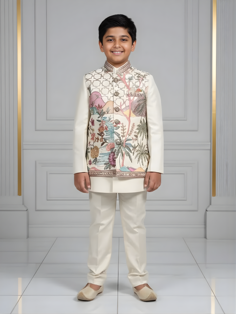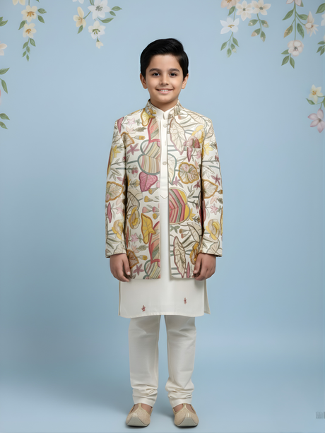 Regular price From Rs. 7,050.00Unit price /UnavailableBoys' Cream Kurta Pajama with Multi-Color Jacket