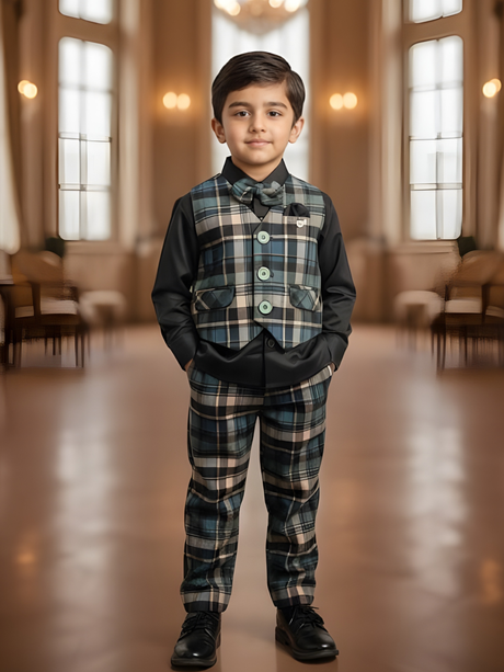 Regular price Rs. 3,450.00Unit price /UnavailableBoys' Black Modern Print 4-Piece Waistcoat & Tr...