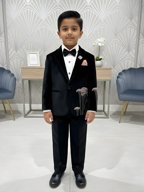 Regular price From Rs. 9,525.00Unit price /UnavailableBoys' Midnight Black Velvet Blazer Suit with Pi...