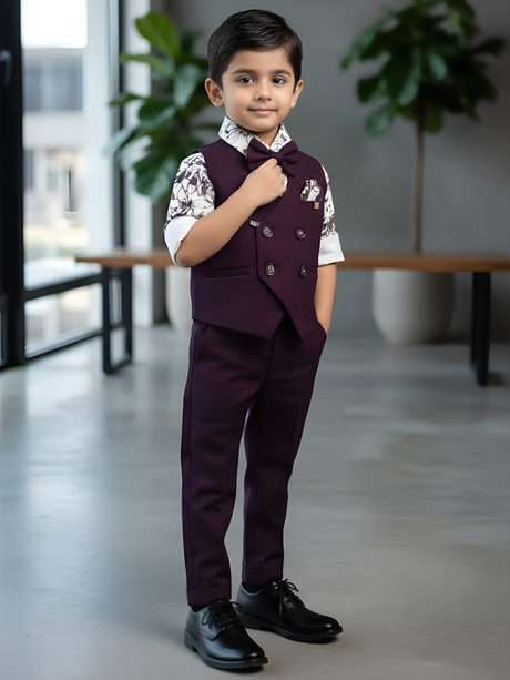 Regular price From Rs. 3,000.00Unit price /UnavailableBoys' Purple Double-Breasted Waistcoat & Floral...