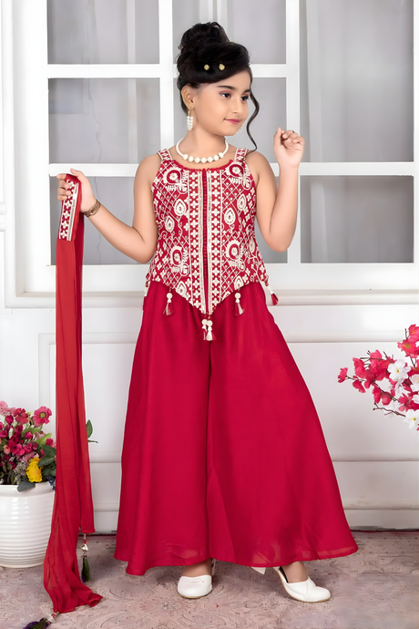 Regular price From Rs. 4,400.00Unit price /UnavailableGirls' Festive Red Crop Top, Vest & Palazzo Set
