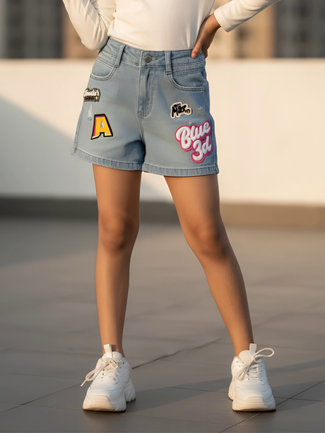 Regular price From Rs. 1,350.00Unit price /UnavailableGirls Blue Frayed Denim Shorts with Varsity Pat...