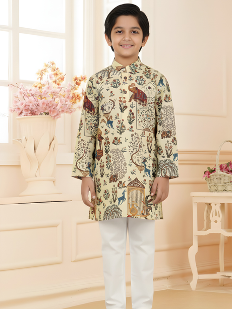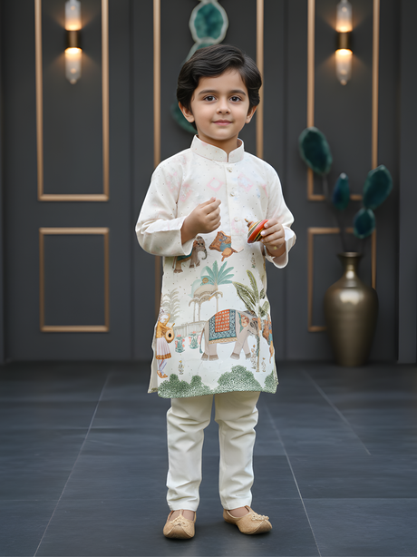 Regular price From Rs. 1,325.00Unit price /UnavailableBoys Cream Mughal Heritage Elephant Print Kurta...