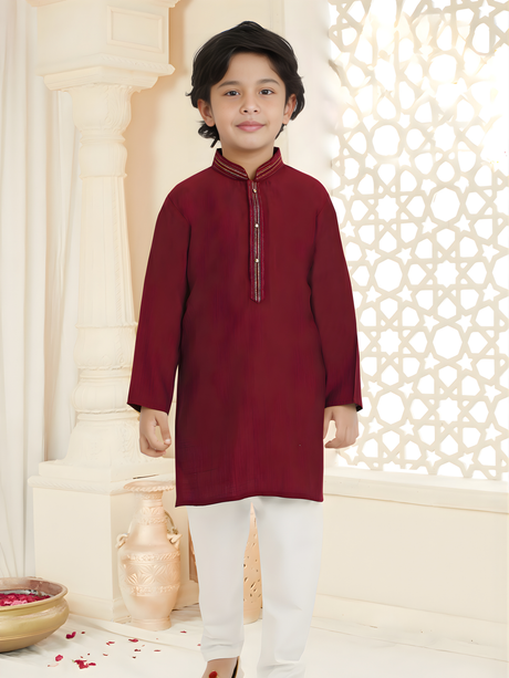 Regular price From Rs. 2,475.00Unit price /UnavailableMaroon Classic Kurta Set with Gold Piping for Boys