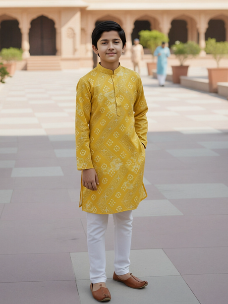 Sale price From Rs. 1,885.00 Regular price Rs. 3,110.00Unit price /UnavailableBoys' Vibrant Yellow Bandhani Print Kurta with ...