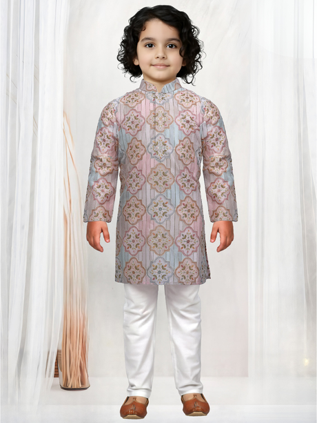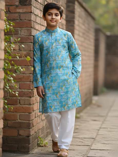 Regular price From Rs. 925.00Unit price /UnavailableBoys' Light Blue Geometric Print Kurta with Whi...