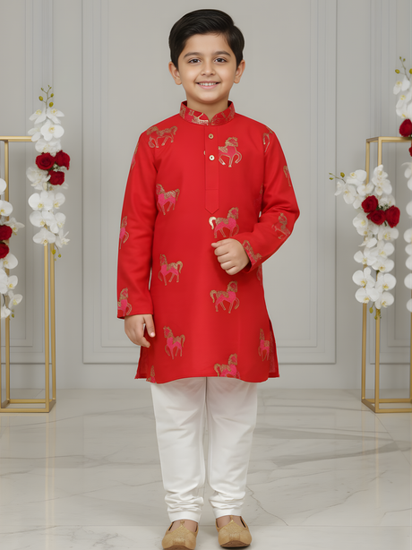 Regular price From Rs. 1,325.00Unit price /UnavailableBoys' Red Kurta Set with Pink Horse Print & Whi...