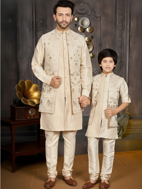 Regular price From Rs. 1,825.00Unit price /UnavailableBoys' Elegant Cream Kurta Set with Contrasting ...