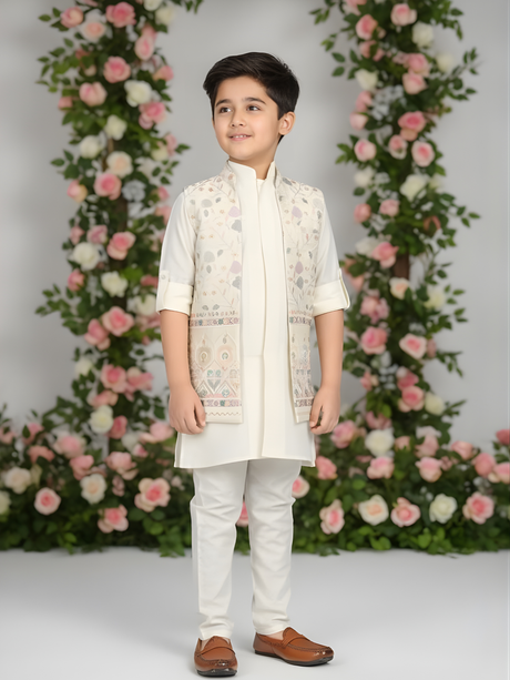 Regular price From Rs. 3,125.00Unit price /UnavailableBoys' Cream Kurta Pajama Set with Multi-Color E...
