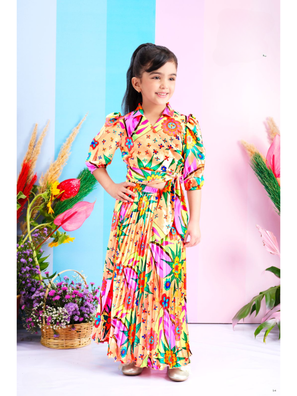 Add a touch of charm to your girl's wardrobe with our Girls Casual Printed 3/4th Sleeves Skirt Two-Piece Set. Featuring a stylish printed top with 3/4th sleeves and a coordinating skirt, this set is perfect for casual outings, playdates, or any relaxed occasion.