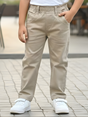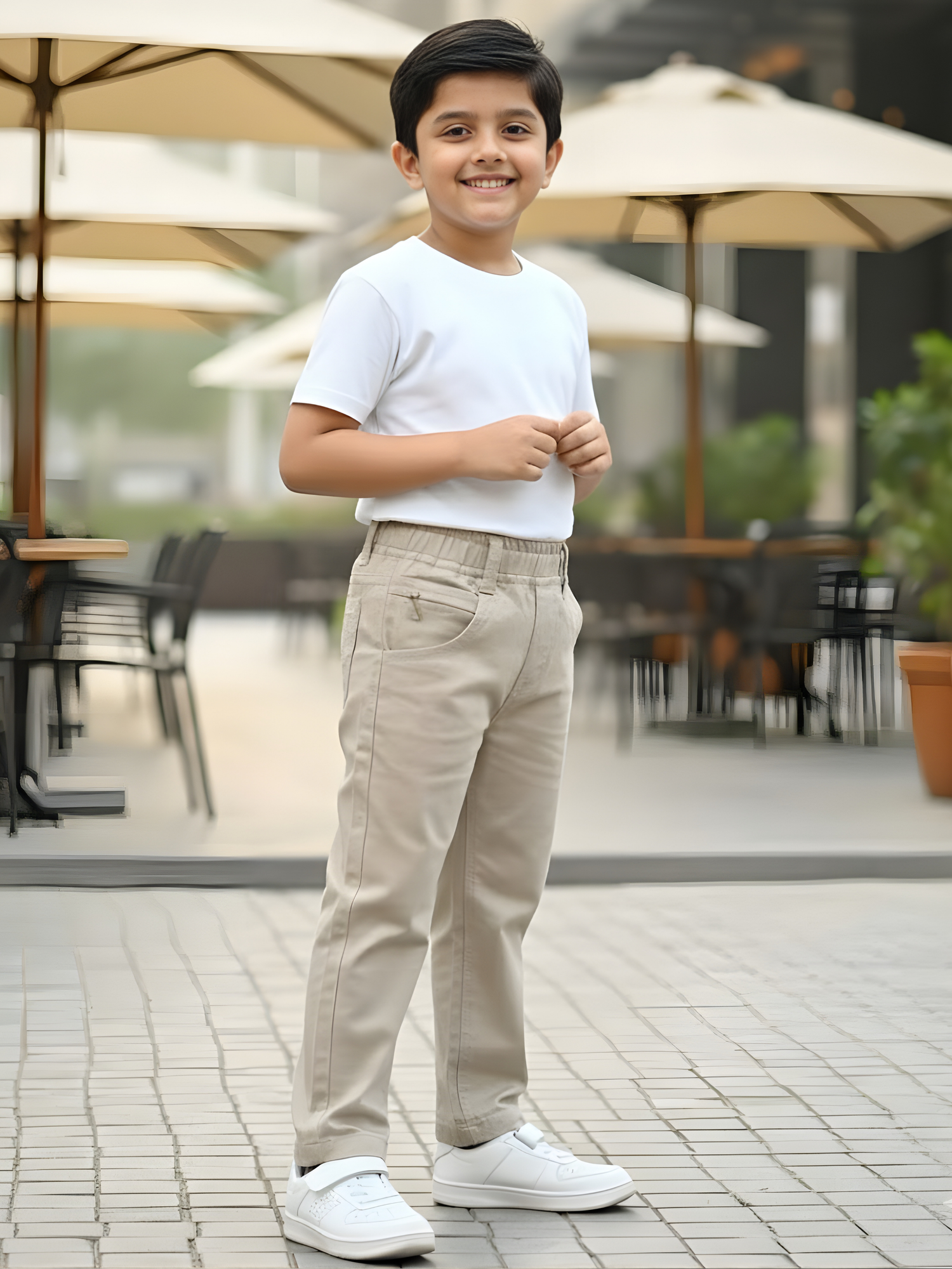 This stylish pair of boys' cotton trousers offers the perfect blend of comfort and durability for everyday wear. Featuring a versatile brown hue and a flexible elasticated waistband, these pants are designed to keep up with active play while maintaining a neat, polished look.