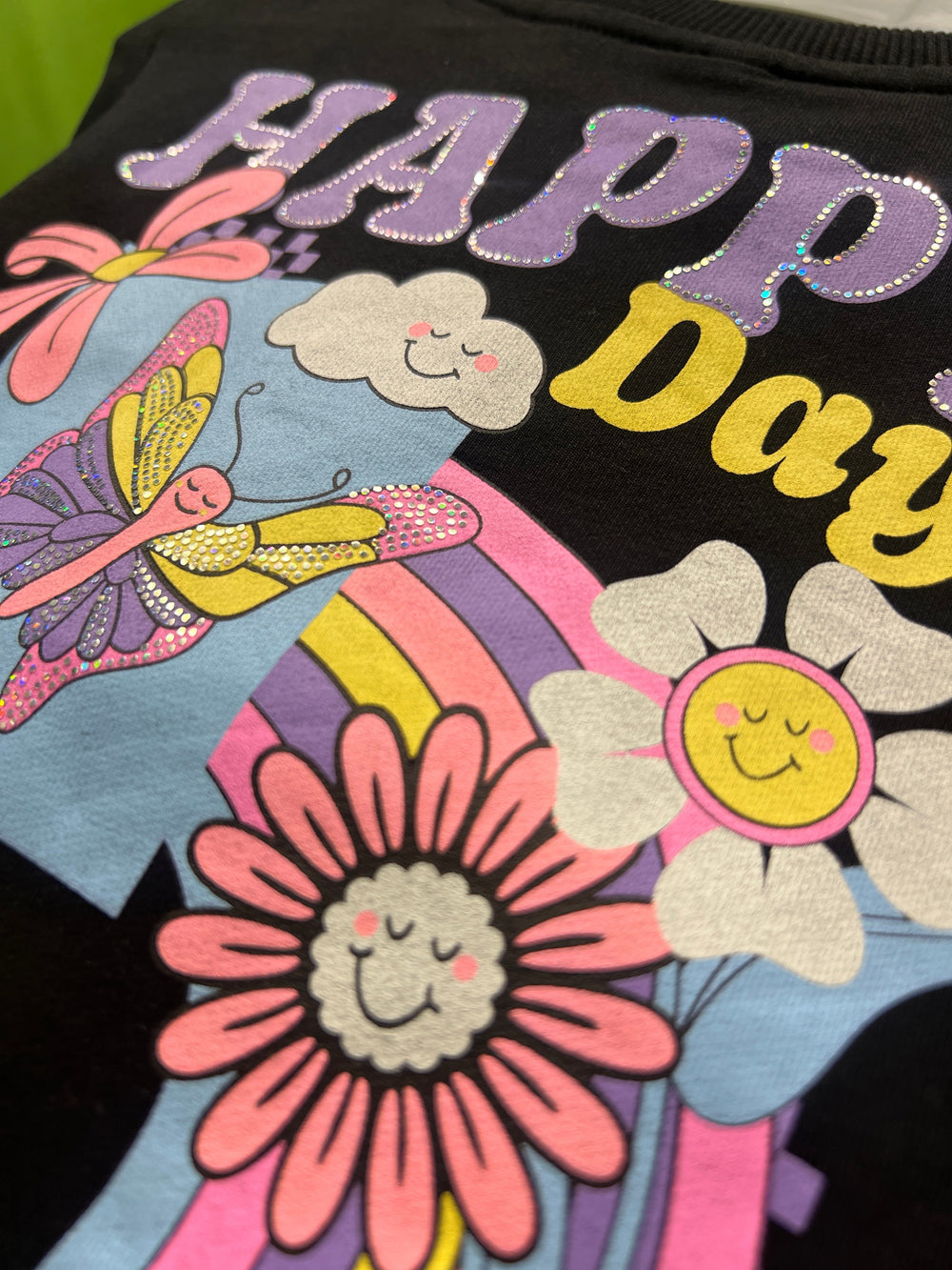 Stylist Detail Description: Kids' Black "Happy Days Are Here" Graphic Sweatshirt