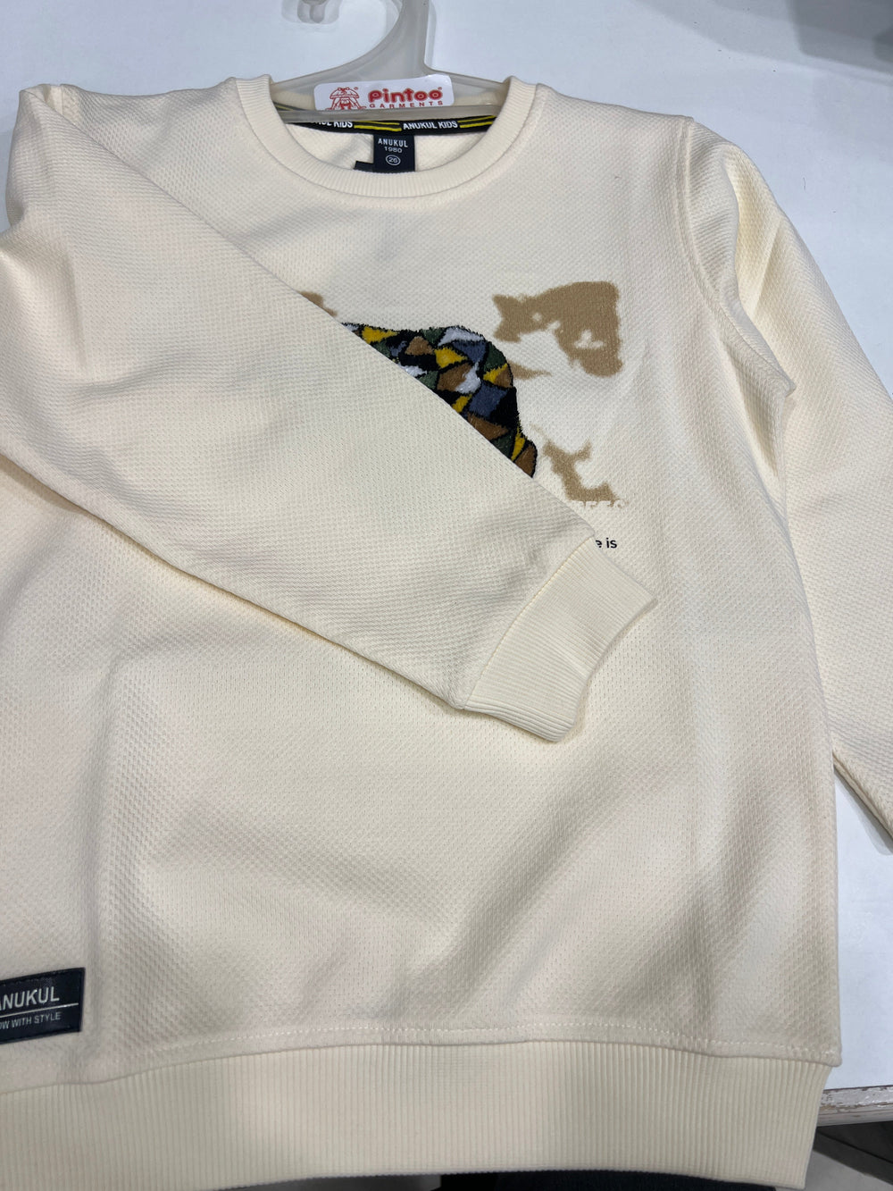 Kids Cream Sweatshirt – Geometric Bear Graphic Design