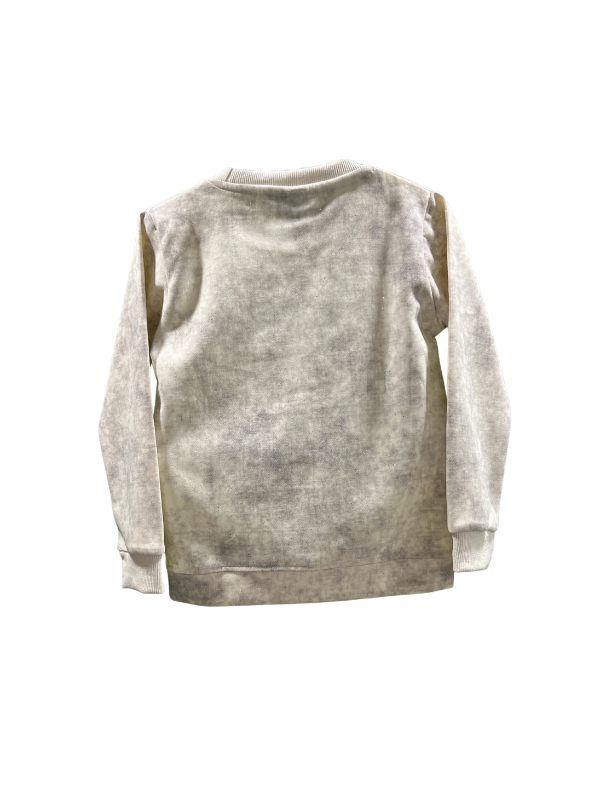 Neckline: Crew neck with brand label detailing visible along the inner collar.