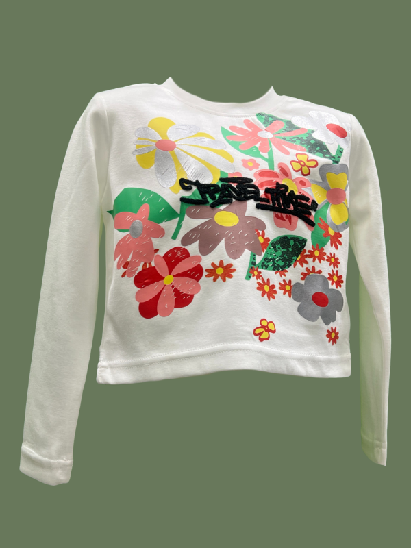 White Floral Graphic Long Sleeve Top – Bold Street Style. - White / 09-10 Y is backordered and will ship as soon as it is back in stock.
