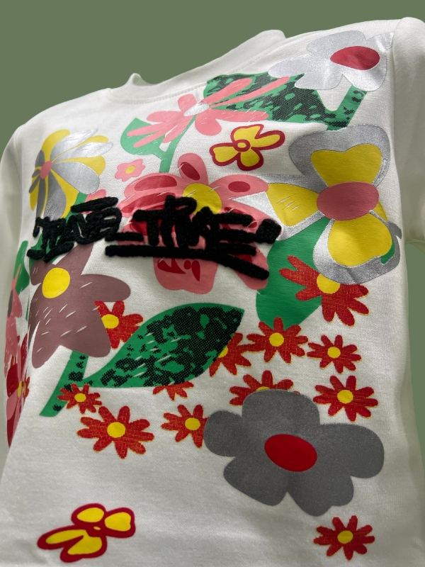 Print Type: Mixed floral + graffiti-style graphic